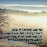 And If I Asked You to Name All of the Things You Love, How Long Would It Take For You to Name Yourself?