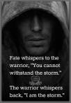 Fate whispers to the warrior, “You cannot withstand the storm”.