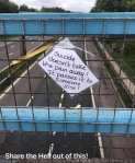 A wonderful friend posted this meme on his page. He wanted to be helpful to anyone going through suicidal thoughts, but after my comment below, private messaged me, stating he was very sorry if he had offended because of my reaction to the meme. I told him I wasn’t upset with him. I truly wasn’t.